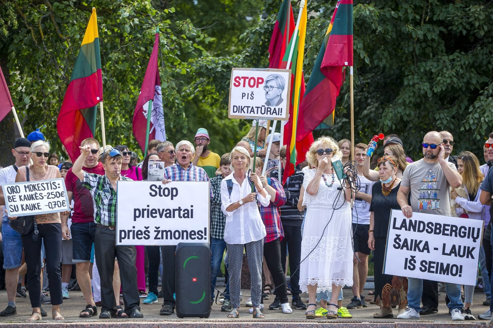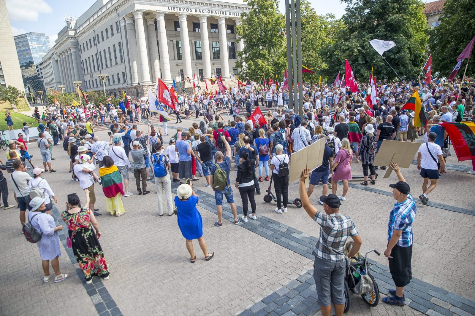 Vilniuje šeštadienį keli šimtai žmonių prie Seimo ir Vyriausybės reikalavo laisvės ir teisės apsispręsti dėl vakcinavimo nuo koronaviruso, ragino liautis segreguoti žmones.