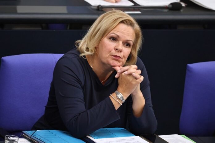Faeser yra žinoma dėl savo griežtų kairiųjų politinių pozicijų, konservatorių persekiojimo ir raginimų taikyti masinę cenzūrą; anksčiau taip pat buvo atskleista, kad prieš pat tapdama vidaus reikalų ministre ji rašė kairiųjų ekstremistų žurnalui „Antifa”.