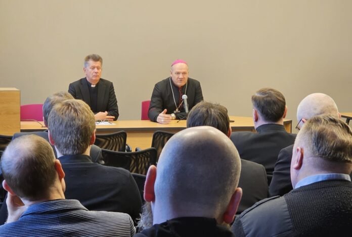 Vyskupas padėkojo kunigams už tarnystę, palinkėjo prasmingo likusio Advento laiko. Vyskupas prisiminė Evangelijos pagal Matą (12, 46–50) ištrauką, tinkančią išgyvenamam laikotarpiui. Marija, kuri pagimdė Jėzų, moko Jo laukti.