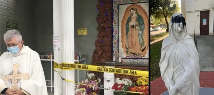 Šis vandalizmo aktas tęsia pastaruoju metu Kalifornijos katalikų parapijose įvykusių panašių incidentų seriją.